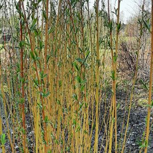 | Elävät pajupiiskat pihamyynnissä keväällä | Keltapaju 'Vitellina' kasvussa | Helmikuussa leikattuja kori- ja keltapajuja |