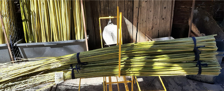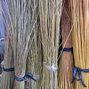 Kuivattu paju on parasta punontapajua. Ja kun se käytetään kuorimattomana, saadaan hyvä kestävyys ilman pintakäsittelyä myös ulkona pidettäviin tuotteisiin. Ja kun kutistuminen on jo tapahtunut, myös erilaisilla sidoksilla, solmeilemalla tai kangaspuilla kudottaessa työt pysyvät koossa eivätkä löysty.Pajun kuorintaa teemme hyvin vähän, joten kuorittua pajua ei ole nippuina myynnissä. Pajunkuorinauhaa hyväksi sidontamateriaaliksi meiltä kyllä löytyy.