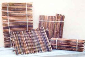 PAJUPISTOKKAAT Pituus 25/30 cm myydään 25 kpl nipuissa/lajike hintaan 15,50 € (sis. alv 25,5 %). Hintaan sisältyy tarkat istutus- ja kasvatusohjeet. Isommista määristä pyydä tarjous! Lisäksi leikkaamme pidempiä pistokkaita esim. kosteikkoistutuksiin tai pengerryksiin. PAJUJEN RUUKKUTAIMET JA KASVAVAT PAJUPUUT Tiedustele lajikevalikoimaa ja hintoja Seijalta p. 050-567 8910. PAJUSAITATPajusaitat ovat kuivatuista tai tuoreista pajupiiskoista määrämittaan katkaistuja, mahdollisimman tasavahvoja ’keppejä’. Kuivatut pajusaitat sopivat mm. erilaisiin solmimis- ja sitomistöihin sekä kangaspuilla kudontaan. Määrämitan lisäksi pajusaitat lajitellaan erikseen paksuihin ja ohuisiin, mitkä vaihtelevat lajikkeittain.Määrämittaan katkaistuja, mahdollisimman tasavahvoja pajusaittoja myymme saittojen paksuudesta riippuen 10, 25 ja 50 kpl nipuissa. Yhdessä nipussa saitat ovat tasamittaisia tai pituus vaihtelee 10 cm välillä. Kerro, minkä mittaisia ja vahvuisia pajusaittoja tarvitset ja kuinka paljon, niin annamme hintatarjouksen. Keväällä myös pitkistä istutettavista piiskoista voidaan katkaista ohut latvaosa pois ja istuttaa esim. aidaksi hyvinkin tukevat ’pajupylväät’. Näin saadaan heti istutusvaiheessa vahva aita. Maata voidaan jopa pengertää pystysuoralla tiheällä istutuksella ja kasvua voidaan hyvin sitten vuosien kuluessa ohjata tai rajoittaa leikkaamalla. Viistossa pengerryksessä tukevat, tuoreet pajusaitat voi jopa istuttaa vaakatasoon mullan pintaan keväällä, paju kasvattaa juuria maahan pituudeltaan ja uusia piiskoja hiukan myös ylöspäin. VALMIITA PAJUTUOTTEITAValmistamme kasvattamistamme pajuista monenlaisia tuotteita ja eri tekniikoilla. Eli Sunniemen Pajutilan PIHAMYYNNISTÄ löytyy PAJUPALLOJA, monen kokoisia PAJUSYDÄMIÄ ja -TÄHTIÄ sekä -KUKKIA, erilaisia KOREJA ja PAJUKORISTEITA, LINTULAUTOJA ym. Valikoima vaihtelee pitkin vuotta—aina tehdään, kun keritään. Kannattaa tulla paikanpäälle katsomaan tai soitella, mitä löytyy. Ja jos Sinulla on idea tai tarve tietynlaiselle pajutyölle, kysy Seijalta, ehtisikö hän tehdä ja mitä maksaisi.HAVUTUOTTEETArin tilallamme kasvattamista serbiankuusista ja muista havupuista leikkaamme suojaus- ja koristehavuja marras-joulukuun myyntiin. Havukransseja ja muita havutöitä saattaa tällöin löytyä myös pihamyynnistämme.MUUT LUONNONMATERIAALIT JA TARVIKEMYYNTISuomalainen luonto ja tilamme kasvillisuus tekevät Sunniemen Pajutilasta oikein ekologisen askartelijan aarreaitan. Myymme erilaisia käpyjä, terhoja, kuoria ja tuohta, risuja, heiniä ym ym. Tule katsomaan, mitä löytyy ja mihin niitä voi käyttää – ja ne kaikki ovat meiltä Suomesta! Punontaan ja sidontaa tarvittavia apuvälineitä , kuten punontapiikkejä, sidontalankoja, Paljon pajusta -työohjeita ym löytyy myös.Samalla vanha tilamme on aikamoinen kirppis; vanhoja puukalusteita, astioita, maataloustyökaluja ja ihanan ruosteisia esineitä sekä kaikkea muuta liki 100-vuotiaalle tilalle kertynyttä tavaraa on kaupan! |